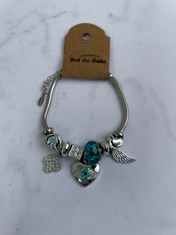 Pulsera de acero quirúrgico con dije de corazón y dije de micro cristal